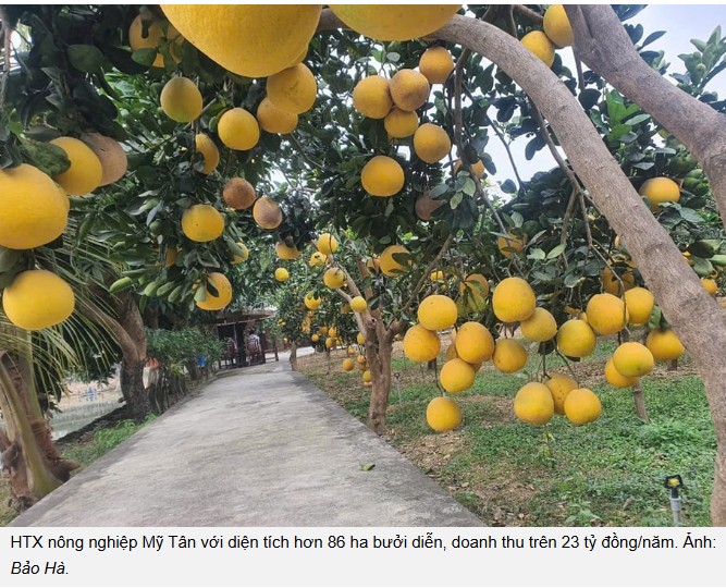 Ở lĩnh vực trồng trọt, HTX nông nghiệp Mỹ Tân cho thấy hiệu quả của việc tổ chức sản xuất theo quy mô lớn và định hướng thị trường. Với diện tích hơn 86 ha và doanh thu trên 23 tỷ đồng/năm, sản phẩm bưởi Diễn của HTX đã có mặt tại các thị trường như Úc, Anh thông qua doanh nghiệp xuất khẩu. Điều này cho thấy HTX hoàn toàn có thể tham gia vào chuỗi giá trị toàn cầu nếu được tổ chức bài bản.
