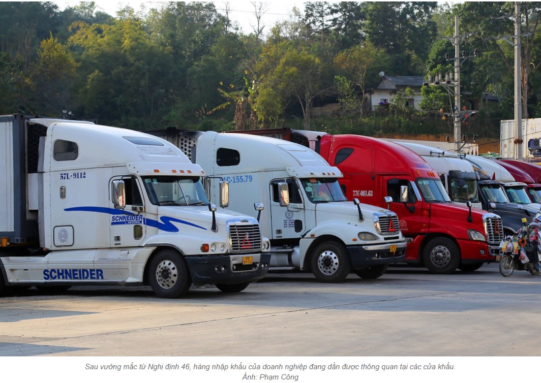 Trước tình hình đó, ngày 3/2, Thủ tướng đã ban hành công điện yêu cầu các bộ, ngành và địa phương khẩn trương tháo gỡ các vướng mắc trong triển khai Nghị định 46, bảo đảm thông quan kịp thời và thông suốt, tuyệt đối không để xảy ra tình trạng ách tắc kéo dài gây thiệt hại cho doanh nghiệp và nền kinh tế.