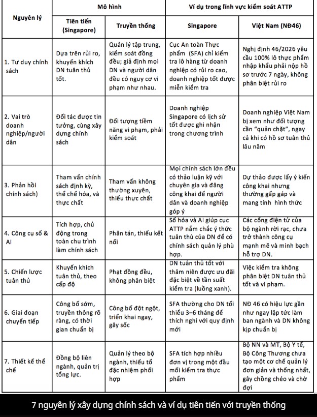Các quốc gia tiến nhanh đến hùng cường (như Singapore, Hàn Quốc…) đã và đang áp dụng nhất quán 7 nguyên lý xây dựng chính sách tiên tiến. Quản lý an toàn thực phẩm nhập khẩu là một lĩnh vực điển hình thể hiện rõ sự khác biệt giữa cách làm chính sách truyền thống và tư duy thể chế hiện đại.