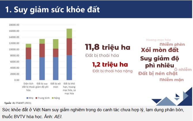 Phát biểu tại hội thảo, ông Huỳnh Tấn Đạt - Cục trưởng Cục Trồng trọt và Bảo vệ thực vật (Bộ NN-MT) khẳng định, sức khỏe đất ở Việt Nam đang suy giảm nghiêm trọng. Việc canh tác chưa hợp lý, lạm dụng phân bón hóa học và thuốc bảo vệ thực vật, tác động của công nghiệp, đô thị hóa và biến đổi khí hậu… đã tạo ra thách thức lớn đối với sự phát triển bền vững của ngành nông nghiệp.