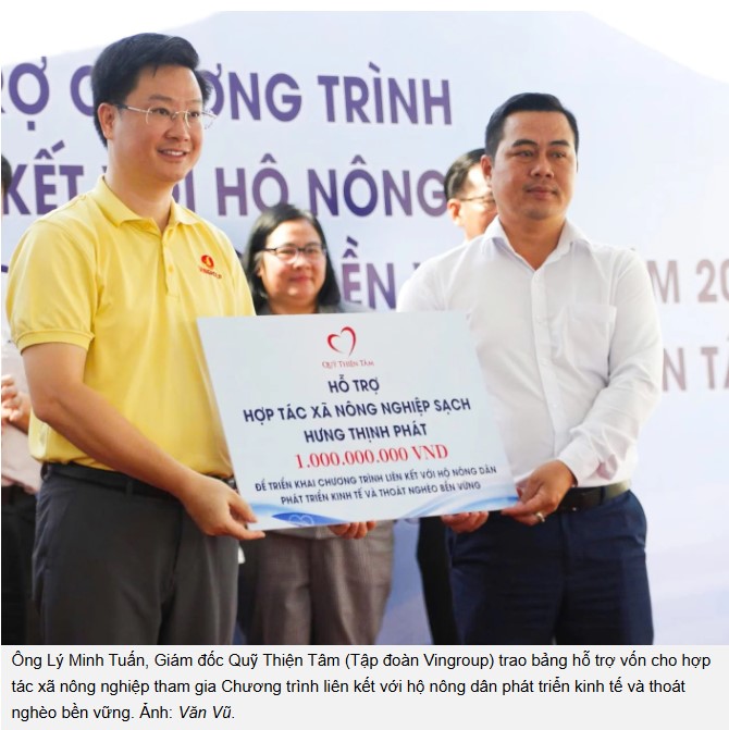 Từ năm 2022, Quỹ Thiện Tâm (Tập đoàn Vingroup) phối hợp với Cục Kinh tế hợp tác và Phát triển nông thôn cùng các đơn vị thuộc Bộ Nông nghiệp và Môi trường triển khai Chương trình “Hợp tác xã liên kết với hộ nông dân phát triển kinh tế và thoát nghèo bền vững”. Qua ba năm thực hiện, Chương trình đã hỗ trợ 90 HTX nông nghiệp thông qua hình thức cho vay vốn không lãi suất, tập trung vào các lĩnh vực trồng trọt, chăn nuôi, thủy sản, lâm nghiệp và ngành nghề nông thôn, góp phần tạo việc làm, nâng cao thu nhập cho hàng nghìn hộ nông dân nghèo, cận nghèo.