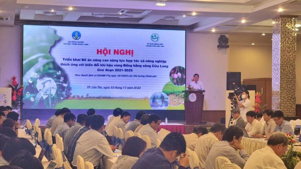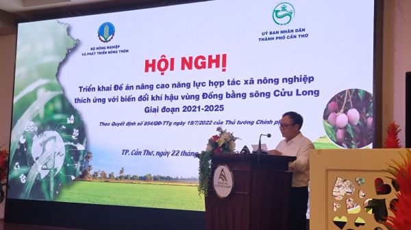 Sáng ngày 22/11/2022, tại Hội trường khách sạn Đông Hà, quận Ninh Kiều, thành phố Cần Thơ, Bộ Nông nghiệp và PTNT đã phối hợp với UBND thành phố Cần Thơ đã tổ chức Hội nghị triển khai Đề án nâng cao năng lực hợp tác xã nông nghiệp thích ứng với biến đổi khí hậu vùng Đồng bằng sông Cửu Long, giai đoạn 2021-2025.
