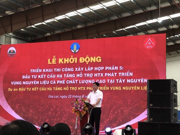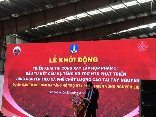 Để tạo không khí đẩy nhanh tiến độ triển khai thi công Hợp phần 5 góp phần phục vụ Đề án phát triển vùng nguyên liệu cà phê đạt chuẩn, quy mô tập trung tại Tây nguyên, hôm nay ngày 22/08/2023, tại Nhà máy Công ty TNHH Vĩnh Hiệp, Lô D1-6, Khu công nghiệp Trà Đa, thành phố Pleiku, tỉnh Gia Lai., Bộ Nông nghiệp và PTNT phối hợp với UBND tỉnh Gia Lai và Đắk Lắk tổ chức Hội nghị triển khai thi công xây lắp Hợp phần 5: Đầu tư kết cấu hạ tầng hỗ trợ HTX phát triển vùng nguyên liệu cà phê chất lượng cao tại vùng Tây Nguyên - dự án Đầu tư kết cấu hạ tầng hỗ trợ HTX phát triển vùng nguyên liệu.