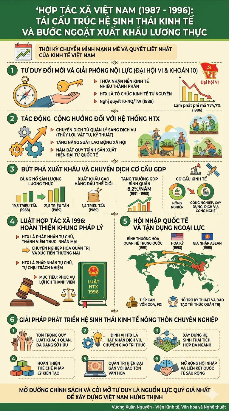 Đặc biệt, việc nối lại quan hệ với các tổ chức tài chính quốc tế đã giúp Việt Nam bắt đầu tiếp cận các nguồn vốn hỗ trợ phát triển chính thức (ODA) và các nguồn lực kỹ thuật quý báu từ các quốc gia phát triển. Sự du nhập của các mô hình Hợp tác xã (HTX) tân tiến từ các nền kinh tế hiện đại, cùng với các chương trình đào tạo tri thức quản trị quốc tế, đã tạo ra một hệ sinh thái hỗ trợ toàn diện. Chính sự kết hợp giữa nội lực đổi mới và ngoại lực hội nhập đã giúp giải quyết triệt để những nghẽn tắc trong giai đoạn trước, tạo đà tăng trưởng thu nhập và thay đổi diện mạo nông thôn một cách căn bản.