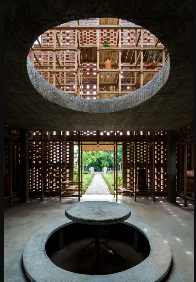 Anh Long thuộc thế hệ kiến trúc sư mới, ưa dùng vật liệu địa phương và kỹ thuật truyền thống – không chỉ gạch mà cả nền nhà sàn, sàn tre nổi – như công cụ bền vững trước biến đổi khí hậu. Anh cho biết Terra Cotta Studio và Workshop lấy cảm hứng từ những ngôi nhà truyền thống của thương nhân địa phương, vốn vượt lũ nhờ tường gạch đục lỗ.