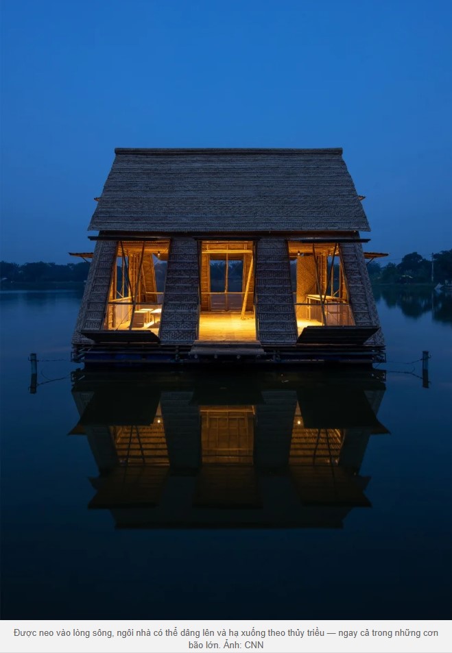 Đối mặt thách thức đó, H&P Architects (Hà Nội) sáng tạo những công trình như thực thể sống, lên xuống theo dòng nước, neo giữ bằng cọc và dây thừng.
