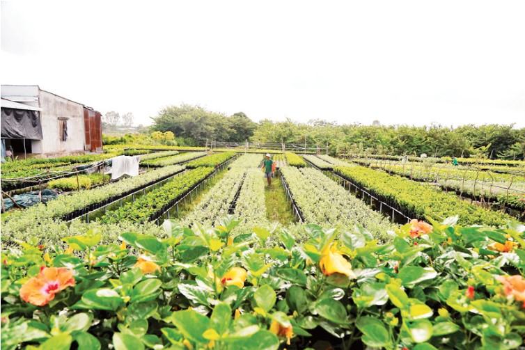 HTX hoa kiểng Tân Quy Đông, phường Sa Đéc (tỉnh Đồng Tháp) cung cấp nhiều dịch vụ, nhất là vật tư ngành hoa kiểng với giá rẻ hơn thị trường và liên kết tiêu thụ, tạo đầu ra ổn định cho thành viên. Ảnh: Khiếu Minh