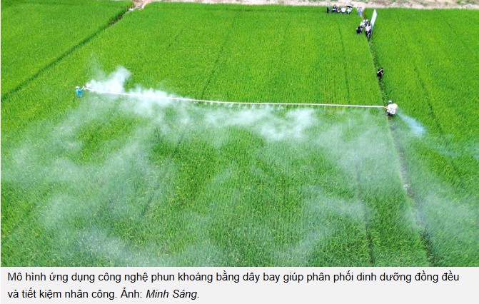 Mô hình được hỗ trợ kỹ thuật từ Trung tâm Nghiên cứu Chuyển giao tiến bộ kỹ thuật nông nghiệp thuộc Viện Khoa học Kỹ thuật Nông nghiệp miền Nam và Công ty cổ phần Hóa Nông AHA, đặc biệt là ứng dụng công nghệ phun khoáng bằng dây bay giúp phân phối dinh dưỡng đồng đều và tiết kiệm nhân công.