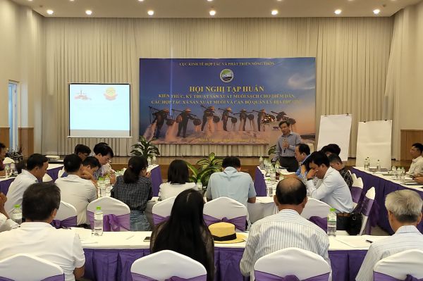 Ngày 28/10/2022, tại tỉnh Ninh Thuận, Cục Kinh tế hợp tác và PTNT tổ chức hội nghị tập huấn kiến thức, kỹ thuật sản xuất muối sạch cho diêm dân, các hợp tác xã sản xuất muối và cán bộ quản lý của một số địa phương. Tham dự hội nghị có trên 60 đại biểu là Lãnh đạo và chuyên viên Sở Nông nghiệp và PTNT, Chi cục Quản lý chất lượng nông lâm sản và thủy sản, Chi cục Phát triển nông thôn các tỉnh, thành phố và diêm dân, hợp tác xã sản xuất muối.