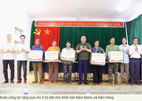 Đoàn công tác cũng đã tặng quà 5 hộ dân khó khăn của bản Nậm Manh, xã Nậm Hàng. Phát biểu tại buổi tặng quà, Thứ trưởng Bộ Nông nghiệp và Môi trường Võ Văn Hưng ghi nhận sự nỗ lực, cố gắng của bà con bản Nậm Manh, xã Nậm Hàng trước tình hình thiên tai phức tạp, nhiều trận mưa lũ gây thiệt hại về người và của trong thời gian qua nhưng bà con đã đoàn kết, nỗ lực vượt qua.