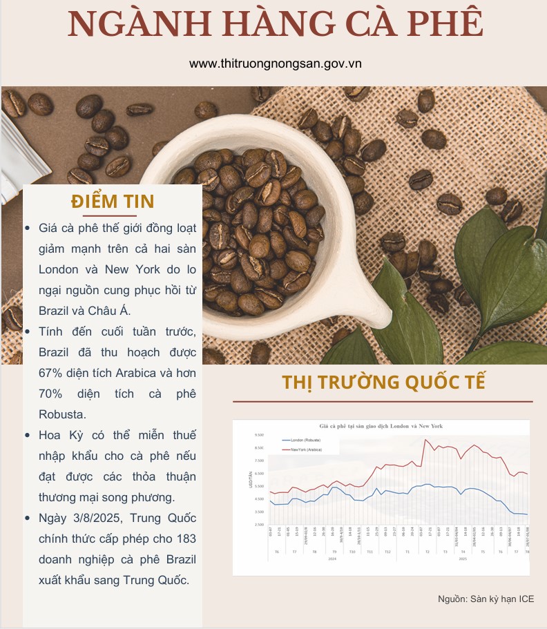 - Trung tâm Thông tin/Viện Chiến lược, Chính sách nông nghiệp và môi trường thông tin giá cả các mặt hàng cà phê, lúa gạo và rau quả tuần qua
