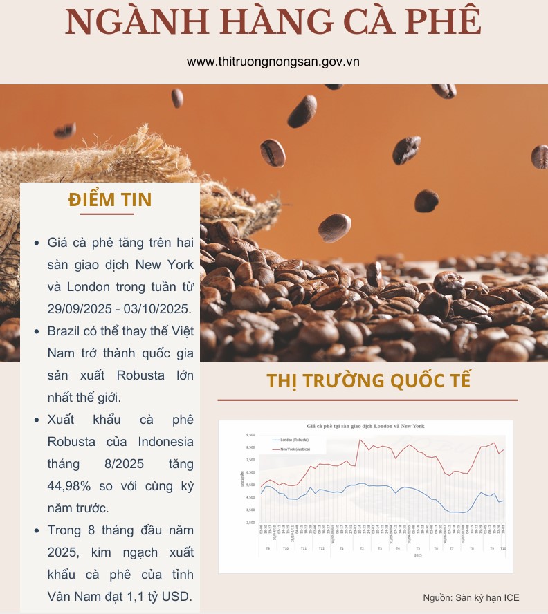 Trung tâm Thông tin/Viện Chiến lược, Chính sách nông nghiệp và môi trường thông tin giá cả các mặt hàng cà phê, lúa gạo và rau quả tuần 39