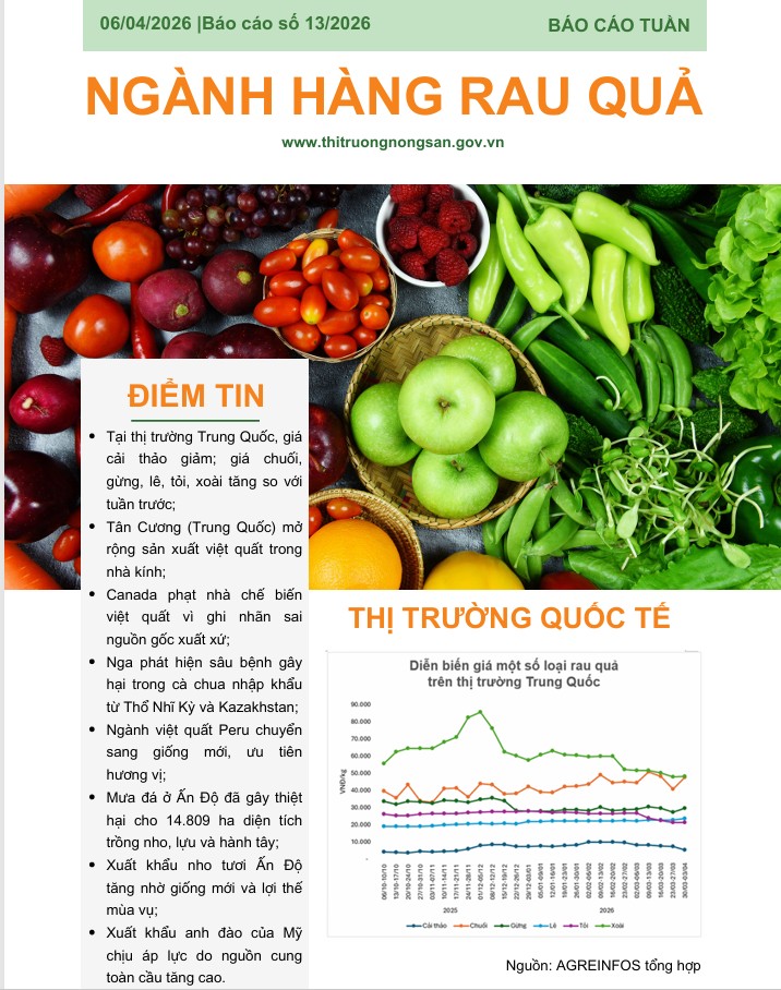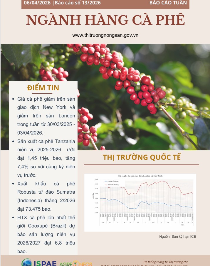 Trung tâm Thông tin/Viện Chiến lược, Chính sách nông nghiệp và môi trường thông tin giá cả mặt hàng cà phê, lúa gạo và rau quả số 13
