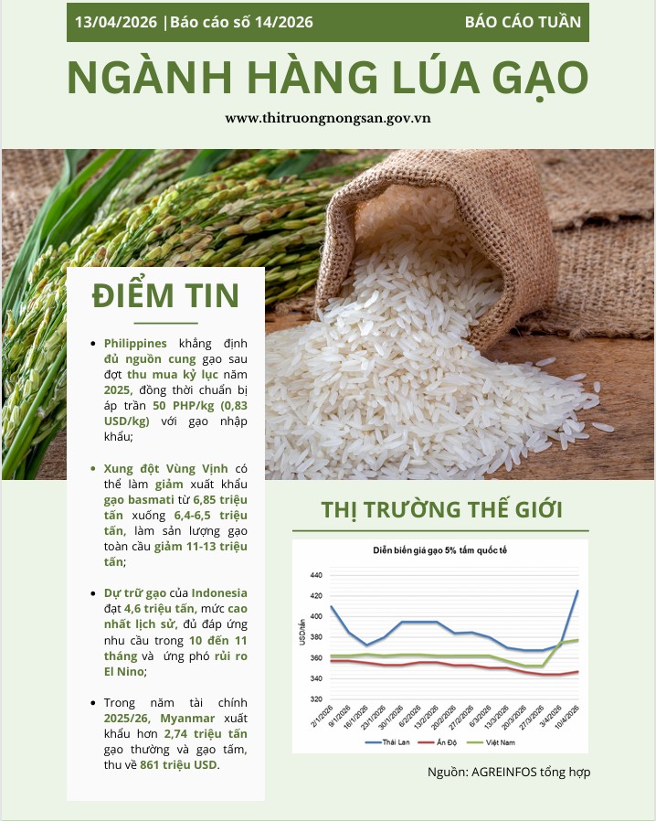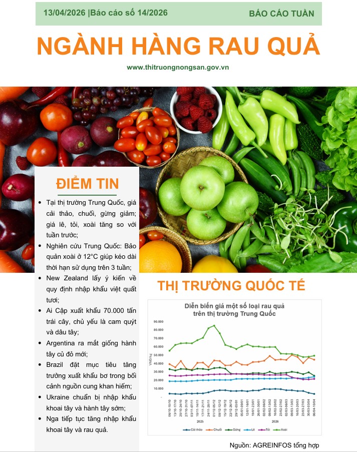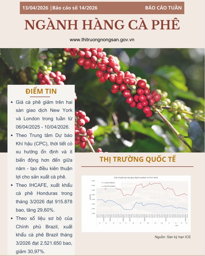 Trung tâm Thông tin/Viện Chiến lược, Chính sách nông nghiệp và môi trường thông tin giá cả mặt hàng cà phê, lúa gạo và rau quả số 14 năm 2026.
